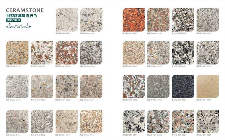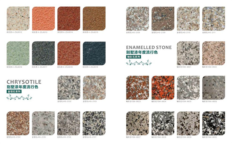 仿石漆可選的顏色有很多,建議在選擇顏色的時候,應(yīng)根據(jù)建筑物的自身特點、設(shè)計風格來選擇顏色效果。