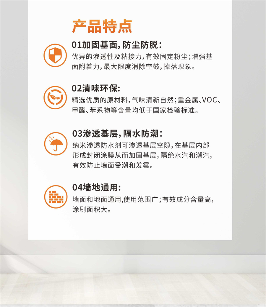 優(yōu)異的滲透密封性,有效保護(hù)墻面。
