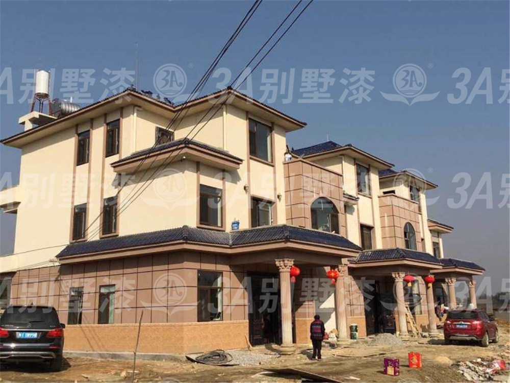 3A別墅純石漆-米黃、白、棗紅搭配效果